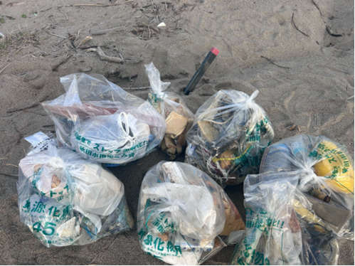 On the morning of 26 September 2025, participants from the Environmental Club of Akita International University drove together to Katsurahama Beach, where they spent about an hour cleaning the shoreline. Armed with gloves, tongs, and eco-bags, the team walked along the coast collecting all sorts of litter washed ashore — plastic bottles, food wrappers, fishing gear, cigarette butts, and even remnants of fireworks.