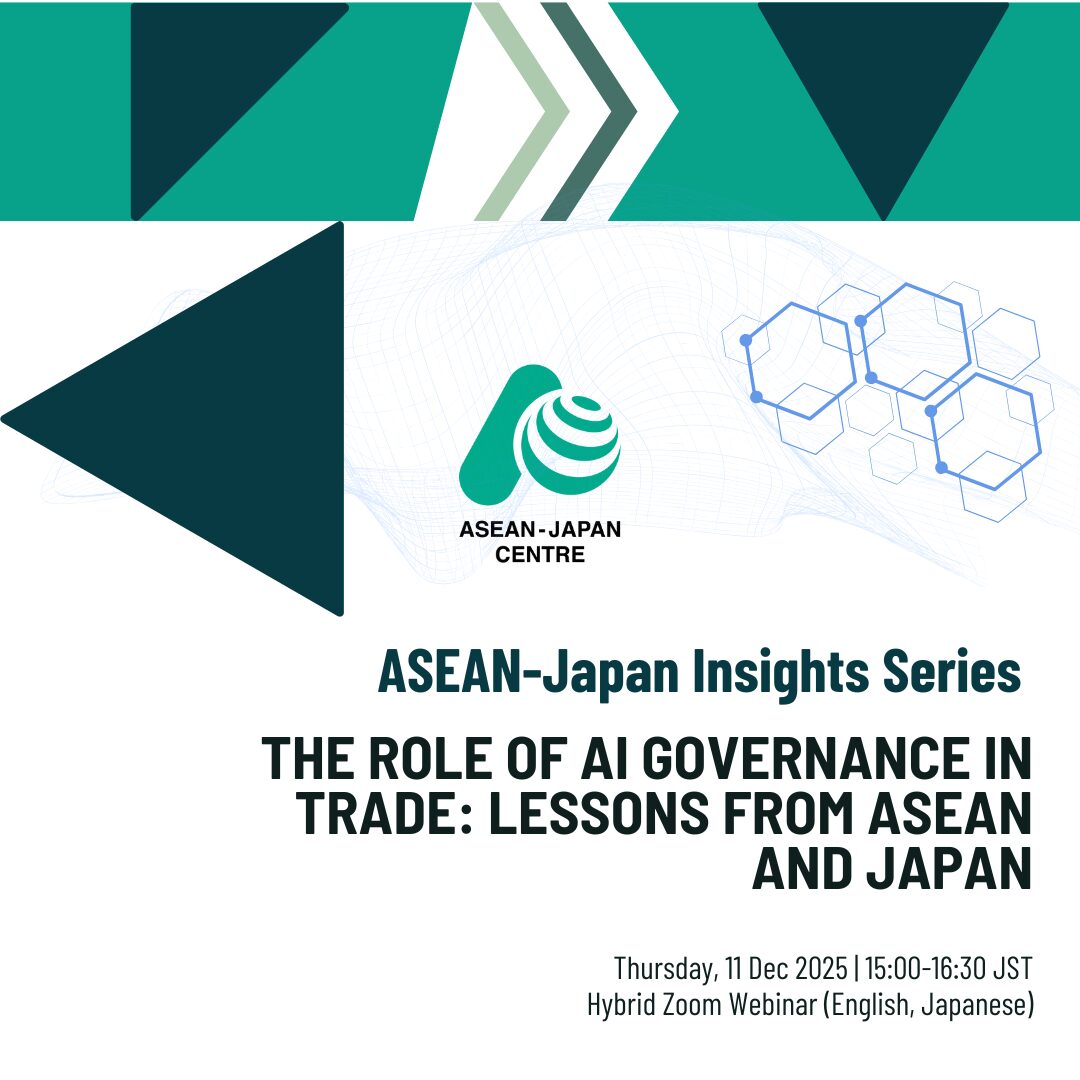 On 11 December 2025, the ASEAN-Japan Centre hosted the webinar “The Role of AI Governance in Trade: Lessons from ASEAN and Japan” under the ASEAN-Japan Insights Series. The event brought together policymakers, business leaders, and researchers from ASEAN and Japan to discuss how AI governance frameworks can support digital trade, innovation, and cross-border collaboration.