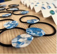 Students creating accessories from plastic waste