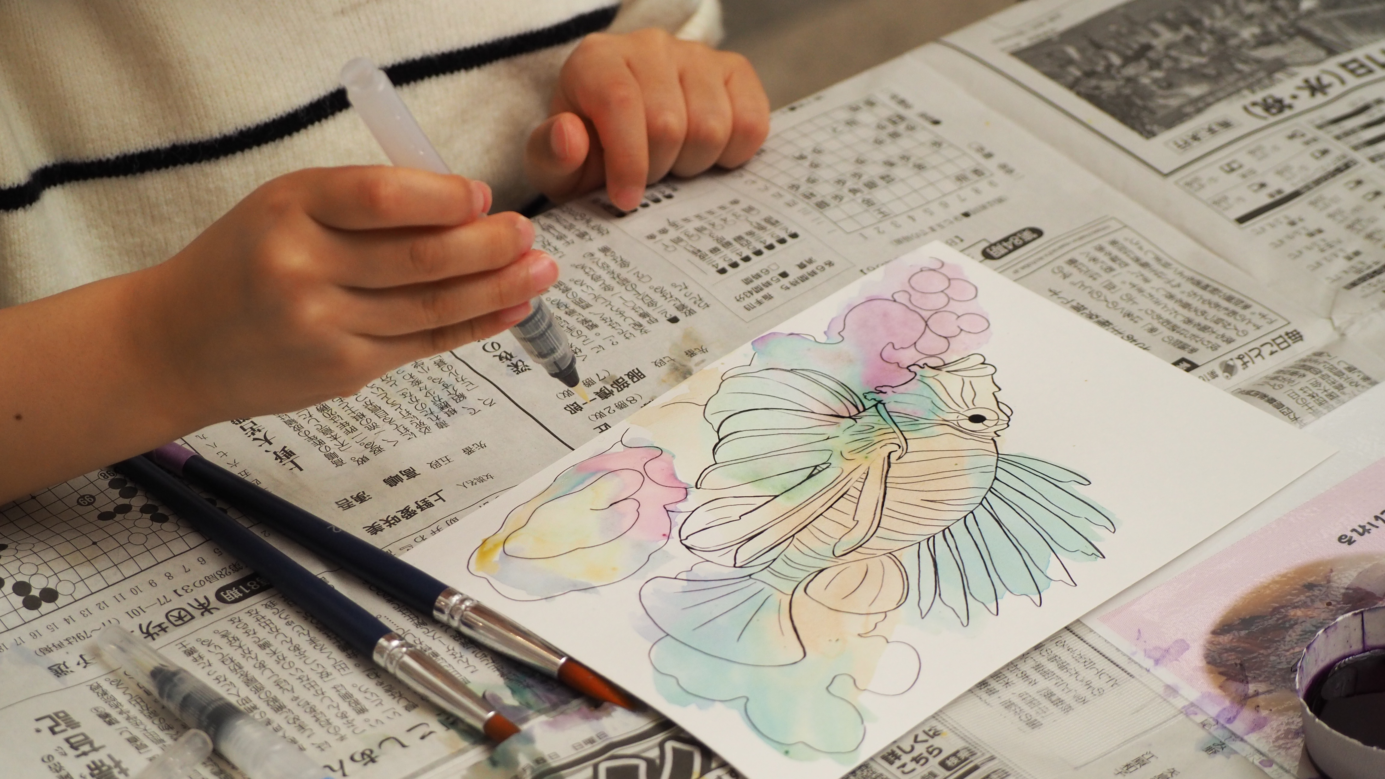 「Fish Safe Paints ―海にやさしい絵を描こう―」と題したワークショップでは、マレーシア出身・ブルネイ育ちで、現在オーストラリアでサステナブル・ビジュアル・アーティストとして活動するセリーン・ラウ氏を迎え、同氏が提案する自然由来の生き物に優しい絵の具を使ったアート体験を提供しました。