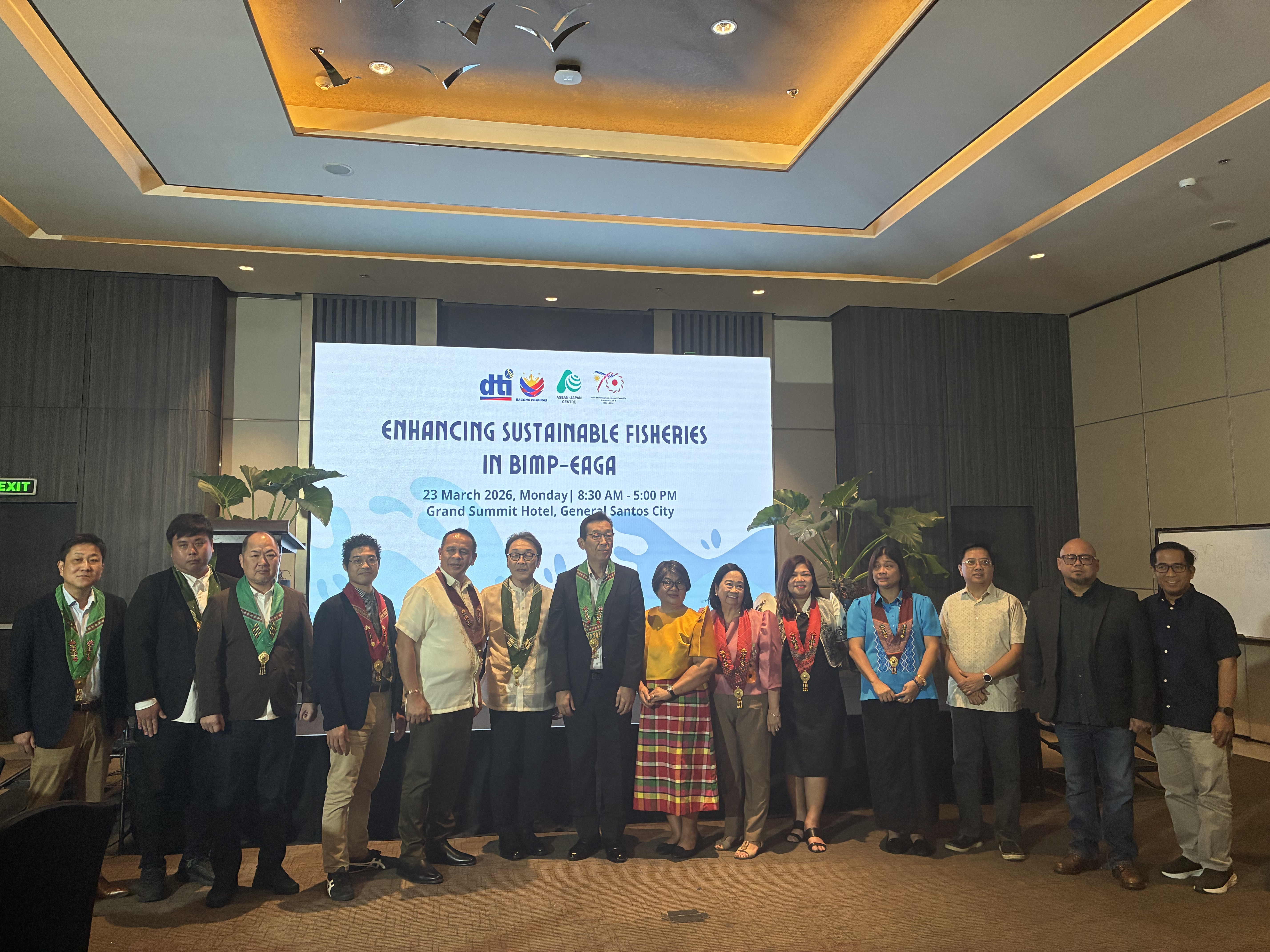 日本アセアンセンターとフィリピン貿易産業省(DTI)との共催により、「BIMP-EAGAにおける持続可能な漁業推進フォーラム」が2026年3月23日、フィリピン・ミンダナオ島ジェネラル・サントス市にて開催されました。本フォーラムは、フィリピン・日本外交関係樹立70周年の一環として実施され、両国の長年にわたるパートナーシップを改めて示す機会となりました。日本およびフィリピンの政府関係者、業界関係者、専門家が参加し、持続可能な水産業、海洋エコラベリング、輸出対応力、ビジネス連携の可能性について意見交換を行いました。