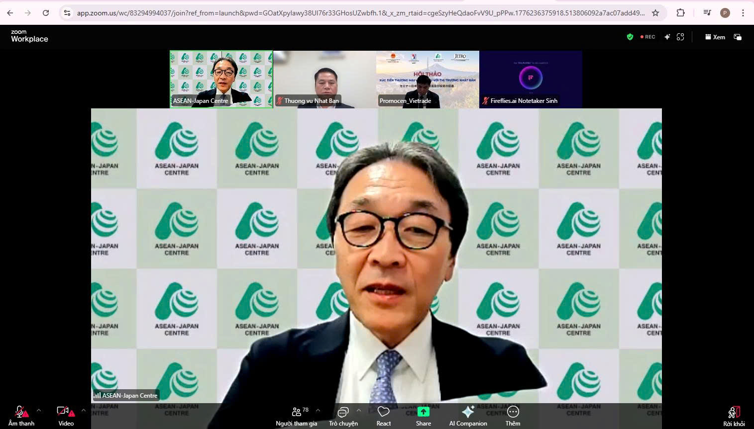 2026年4月15日、日本アセアンセンター(AJC)は、ベトナム商工省、ベトナム貿易促進庁(VIETRADE)、JETROハノイ事務所、および在日ベトナム商務部との共催により、「対日市場に向けた貿易・投資促進セミナー」をオンラインで開催しました。