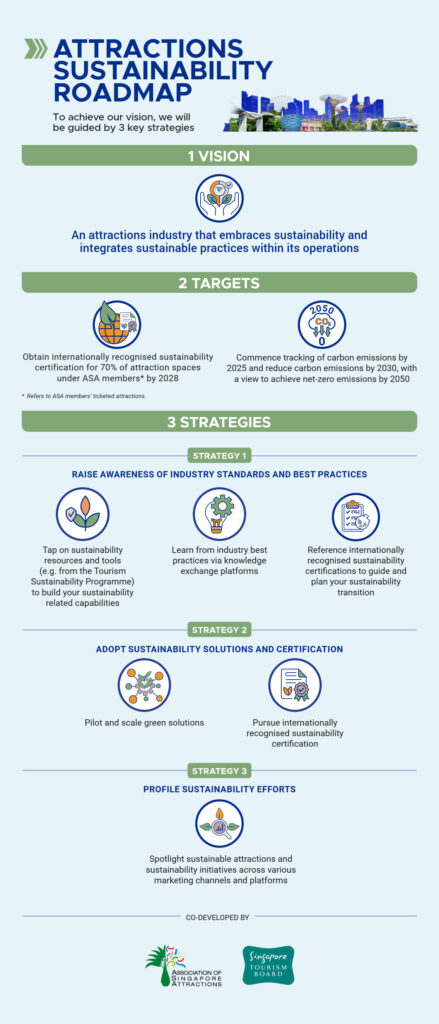 By 2028, the aim is for 70% of attraction spaces under ASA members* to obtain internationally recognised sustainability certification. As of 2025, the attractions industry had commenced carbon emissions tracking, with a view to achieving net-zero emissions by 2050.