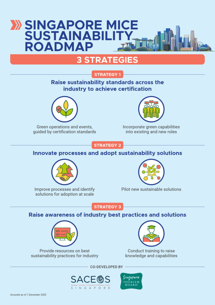 The MICE Sustainability Roadmap addresses the complex operations of the meetings, incentives, conferences, and exhibitions (MICE) sector through three focused strategies: